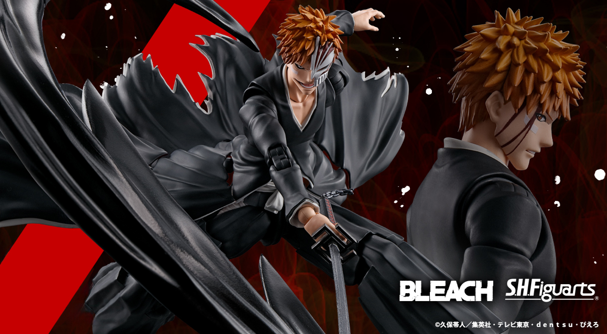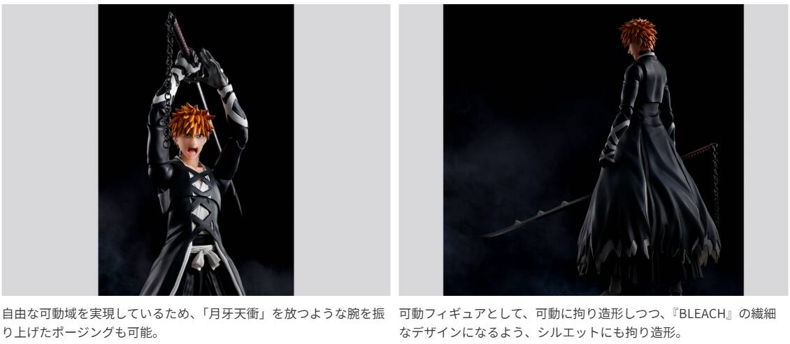 『BLEACH 千年血戦篇』から、卍解した姿の「黒崎一護」がS.H.Figuarts化。可動機構を随所に仕込み、更に衣装に軟質パーツを使用しているため、脚を開いたポーズなども自由自在に可能。