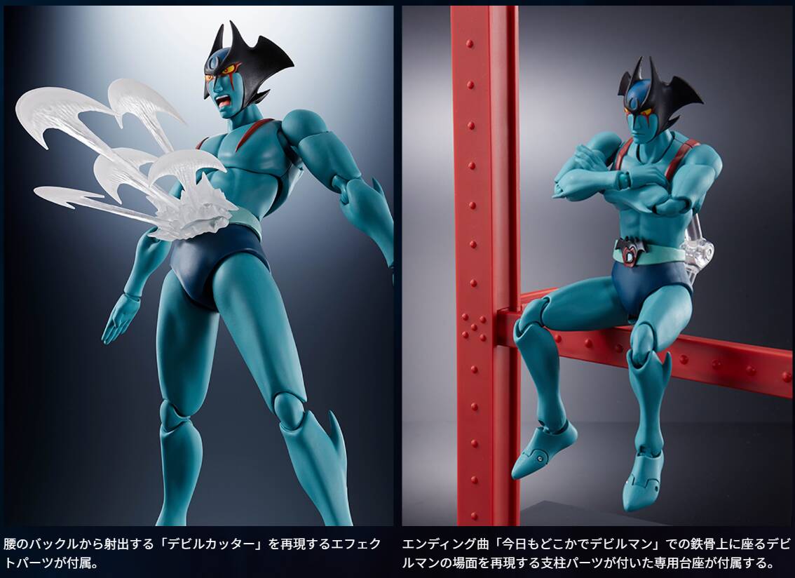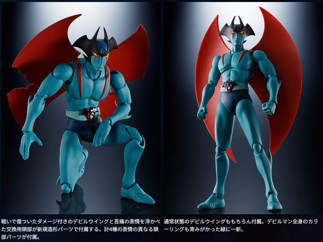 デビルマンがS.H.Figuartsに再臨!カラーリングを一新し、映画『マジンガーZ対デビルマン』で描かれた「傷ついたデビルウイング」と「苦しみに耐える顔」を新規造形で追加。「超合金魂 GX-105 マジンガーZ 革進 -KAKUMEI SHINKA-」(別売り)に装着できる「ジェットスクランダー用のZマーク尾翼」と「平手の交換用パーツ」も装備。