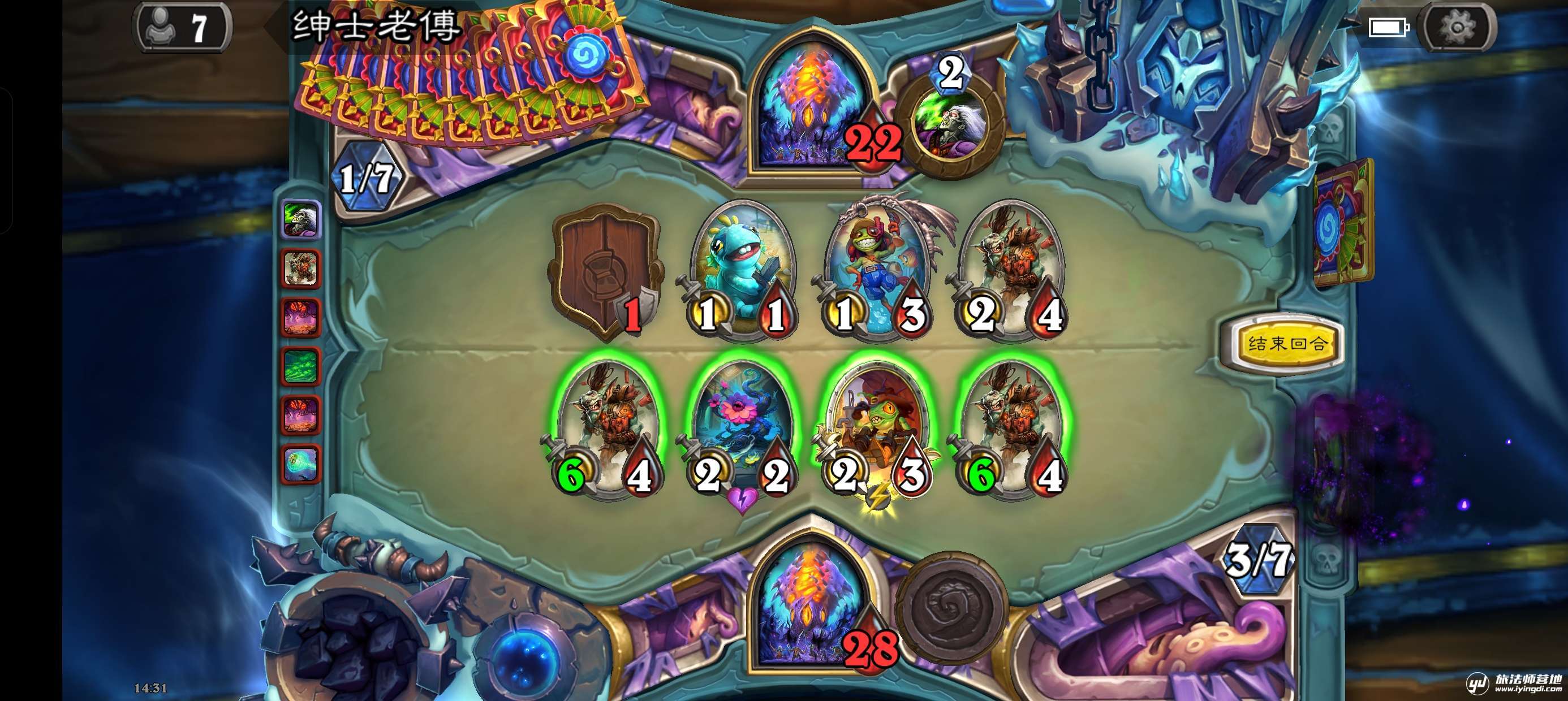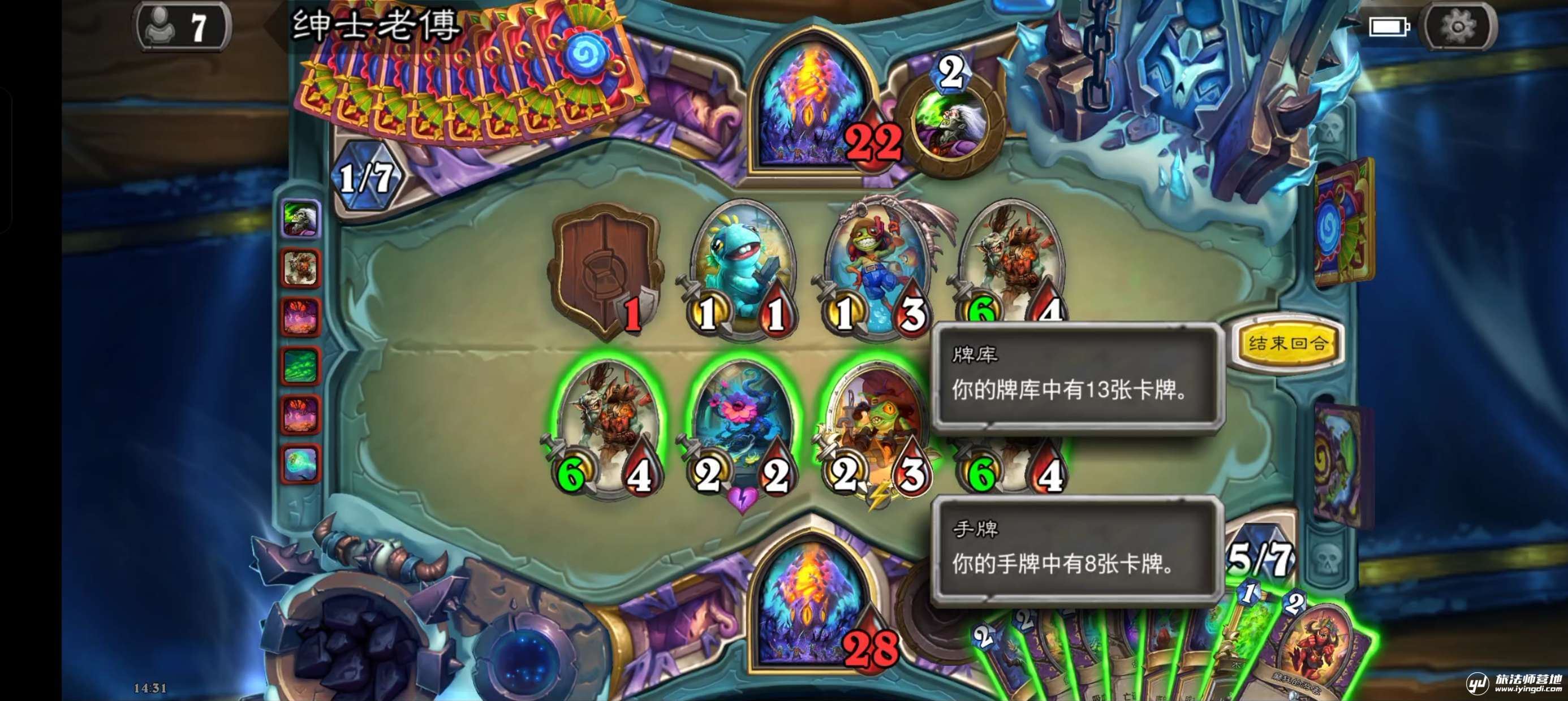 我们换成情势反转再试一次,此时我们的手牌数为8,打出情势反转