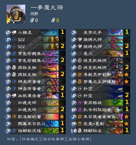 原本想组成控制卡组,但想想就发觉骑士根本不可能控住场,并且棘嗣幼龙费用太高,只要我们可以场上站住一张随从,就可以直接启动,于是我想到了魔丸,进而回忆起魔丸骑这套冷门卡组,所以我加入了魔丸组件。