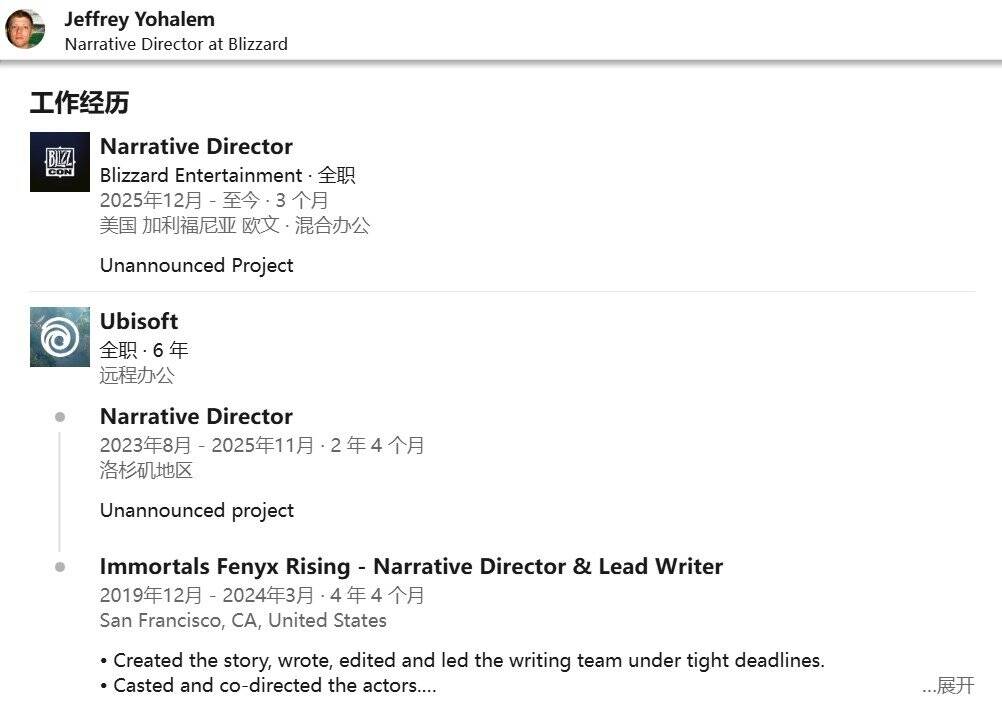 在2023年8月至2025年11月期间,约哈勒姆在育碧参与了一个尚未公布的项目。目前该项目命运未卜,尚不清楚会否继续推进或移交他人。他并未公开离职的具体原因,但确认已于去年12月同期加入暴雪娱乐。