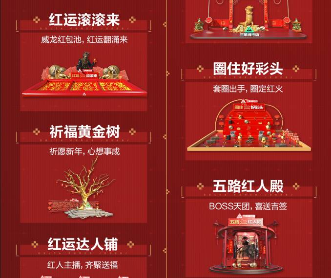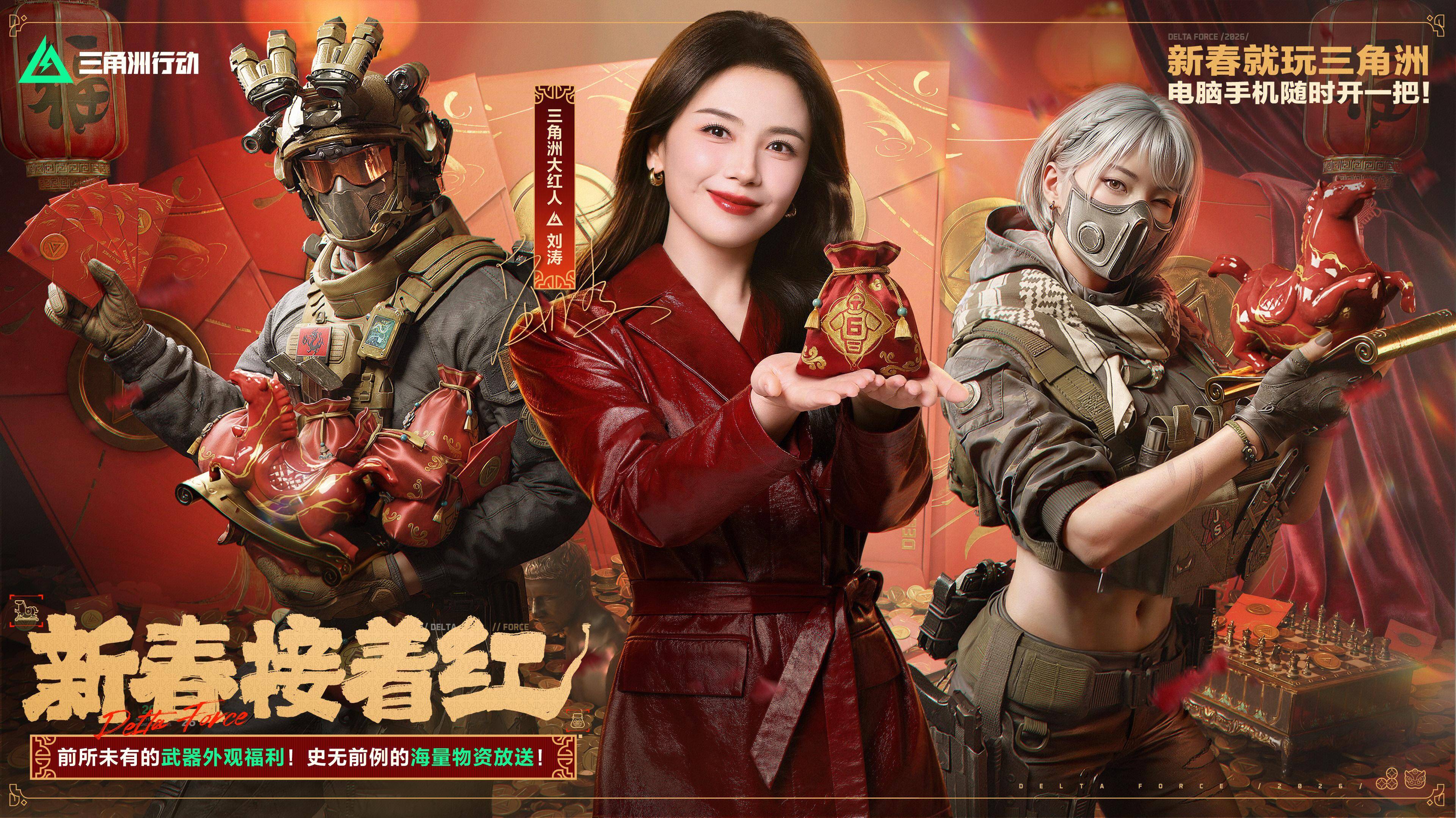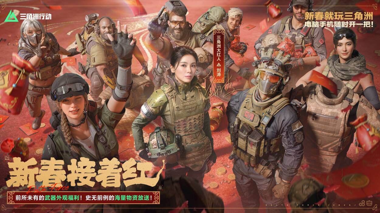 新春来洲接着红!《三角洲行动》新春福利活动即将全面开启,2600限时三角券7天登录送、最多11款传说武器外观免费送、传说近战武器参与玩法免费拿、更有六套福袋、新春大红、百万哈夫币红包等海量物资放送!邀全体干员共赴新春之约,一起红红火火过新年!