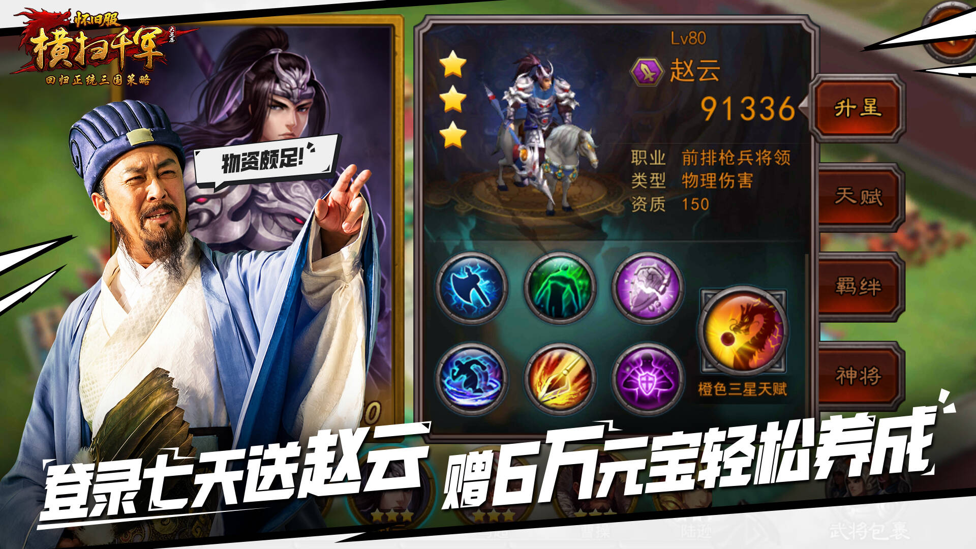 怀旧服公测登录七天即可免费获得神将赵云,前14天每日追加体力派送。酒馆新增加了保底机制,达到相应抽选次数额外送风华绝代武将包,从中可自选孙尚香或者黄月英。助力主公快速组建核心!