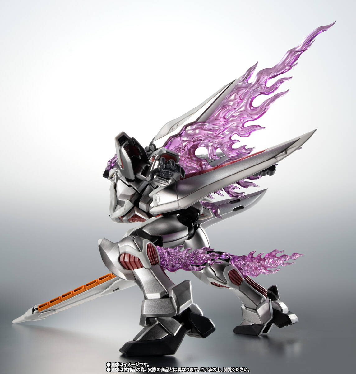 以幻影高达为基础,配合各部的全新造型,把机体最大特征——全身银色装甲的大部分,用涂装华丽地重现了出来。