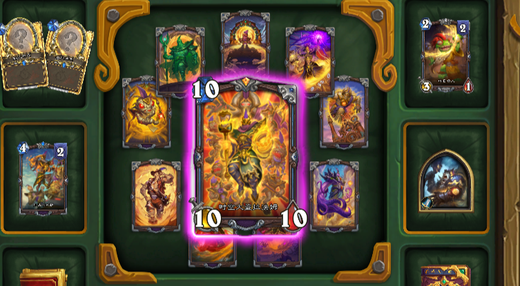 所以,卡组的思路就出来了,卡组需要特化构筑,需要尽量多的1-2费优质卡拖住前期,尽量多的超高费解场卡拖住后期场面,7费前尽量打出1费和2费小拉法姆以及被减到2费的巨人拉法姆(必须)(在此感谢susanna老哥提的宝贵建议,之前确实忽略了),7费直接下黑角大王,之后就凭借超高质量拉法姆以及奇利亚斯、黑洞等超强解场牌拖到拉法姆大王下场实现炫酷斩杀。
