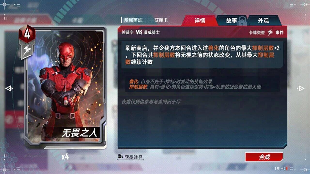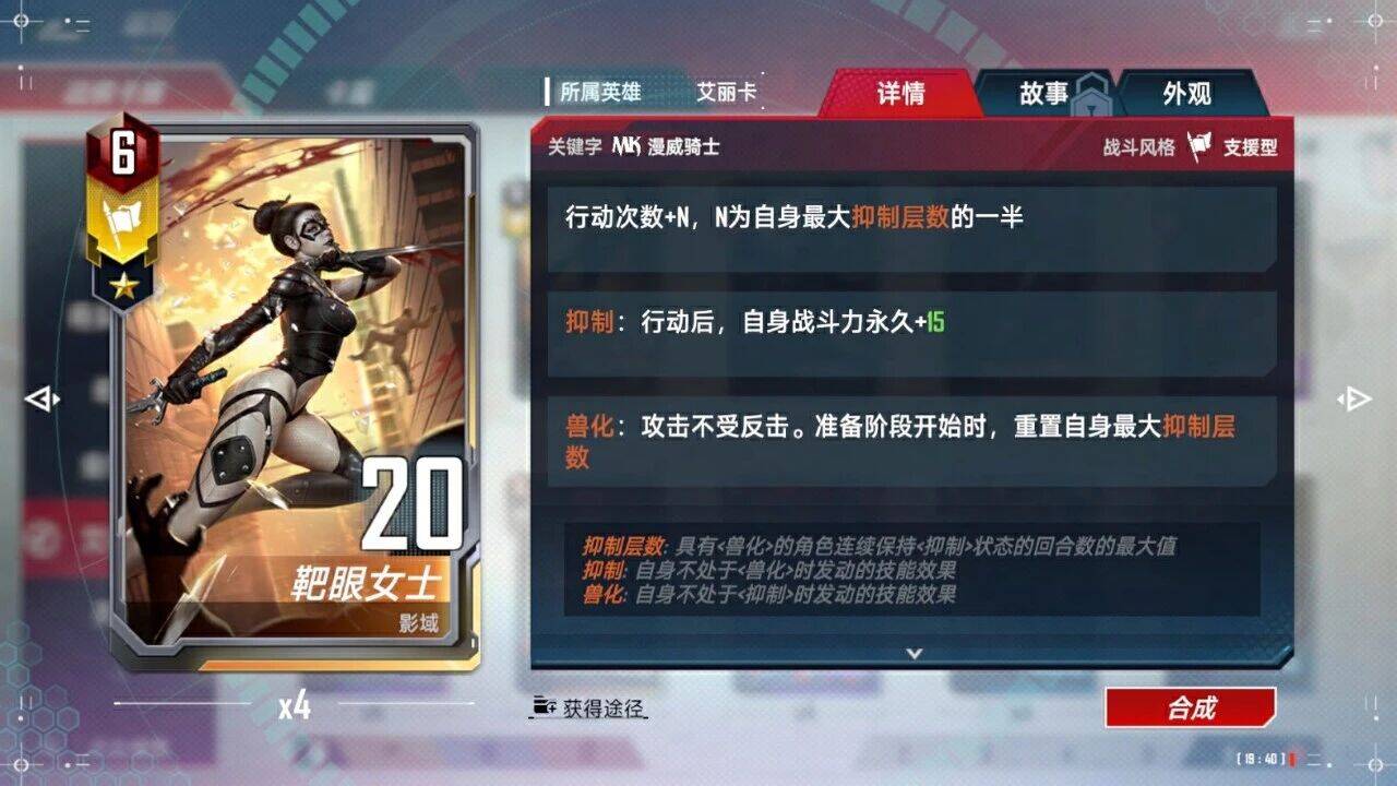 <抑制>:准备阶段结束时,自身战斗力和护甲+N,N为自身<抑制层数>*1/2/4