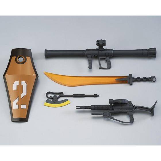 マニュピレーターの形状変更に伴い、手持ち武器として、ザク・バズーカ、ザク・マシンガン、ヒートホークが付属。