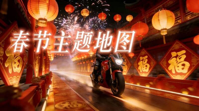 游戏地图全面穿上“新年装扮”,张灯结彩,烟花绽放,骑进每一个角落都是满满的节日气息!