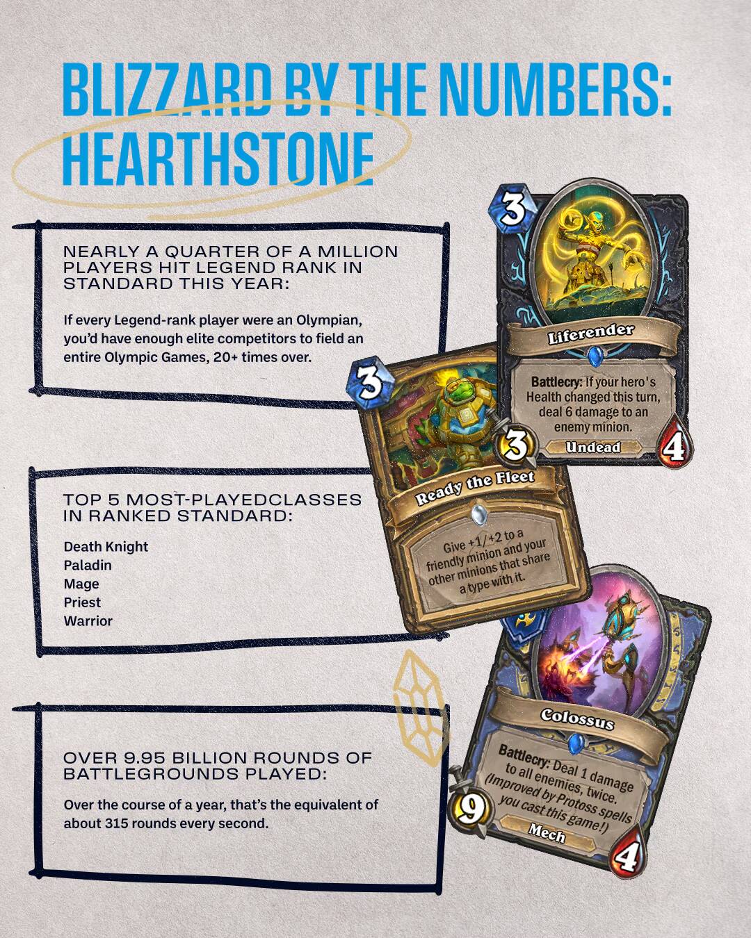 Nathan:也要考虑到炉石今年3月就正式12周岁了,游戏里已经多了很多新东西。所以我们在学习其他更新出的游戏如何取得成功的同时,我们也要考虑到炉石是否同样适用。比如有的游戏一打开从主界面开始就都是各种饰品,它们并不一定符合炉石的做法,我们要找适合自身的做法,而我们答案也许和新游戏的不一样。而且炉石也是打算继续长远运营下去的,至少再来个12年吧,在此期间我们会一直研究未来的方向。