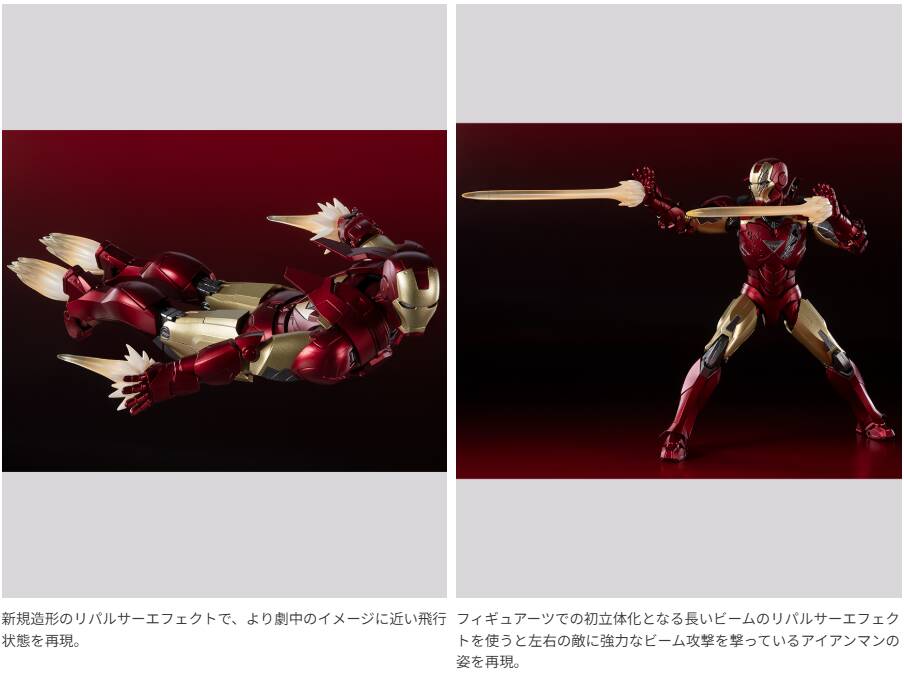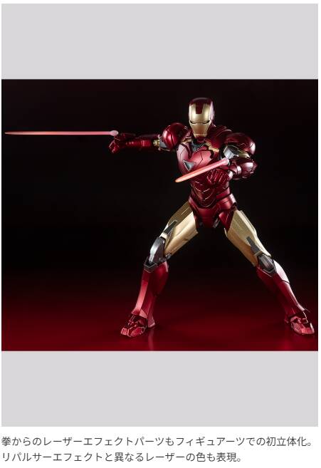 2017年に発売された「アイアンマン マーク6」をベースに、頭部、胸部を一新。リパルサーエフェクト等も新規造形となり、よりシャープにった各部の造形と新たな塗装表現が臨場感を高めます。同時期発売の『アベンジャーズ』メンバーと合わせてAVENGERS ASSEMBLE!