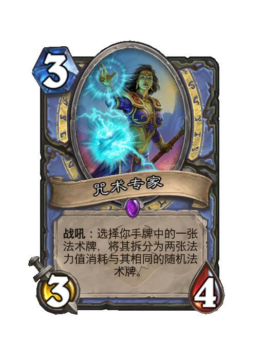 战吼:选择你手牌中的一张法术牌,将其拆分为两张法力值消耗与其相同的随机法术牌。