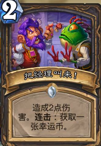 经理这卡前期补刀解场还能提供硬币,后期也是一轮打出2苔丝甚至3苔丝的保证,虽然会有打自己的问题,但还是必带。