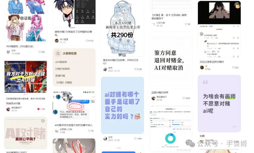 创作端与消费端的双重焦虑在这样的背景下不断放大。为了缓解这种焦虑,关于“AI对赌”便成为了显学并开始在绘圈中大行其道。