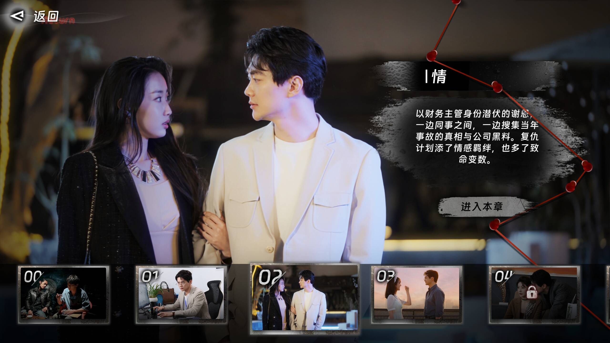 真人实拍,电影质感:专业影视团队拍摄,所有场景、表演均为真人实拍,搭配电影级运镜与光影处理,让玩家身临其境感受每一次暗藏机锋的对话、每一次命运攸关的抉择。