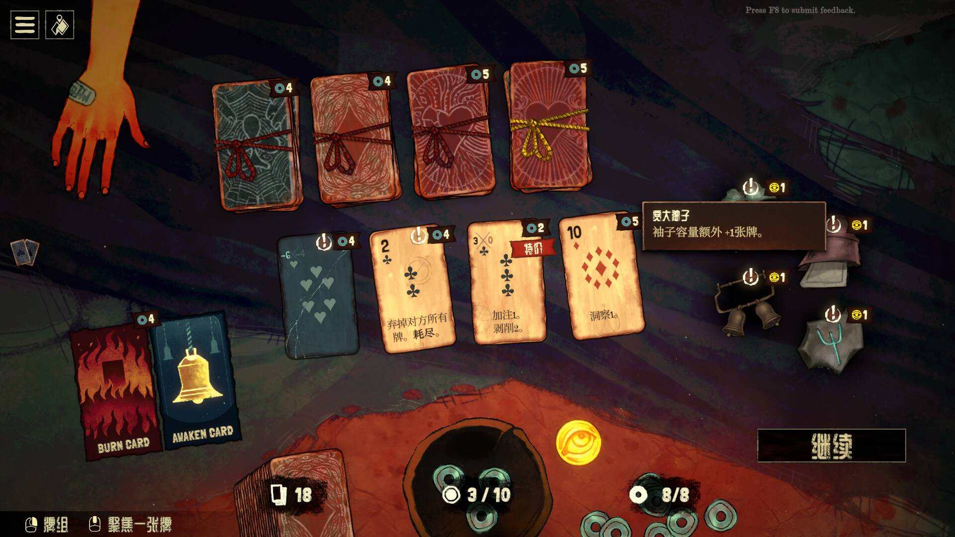 - 神器不是越多越好,前期可以多选择功能性神器,比如觉醒次数+1,藏牌数+1,熟悉游戏后,你就需要考虑神器和手牌之间的配合。