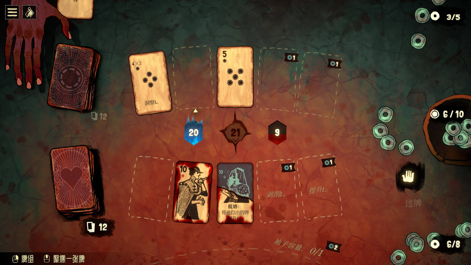 这套东西玩进去之后,21点本身已经不重要了。你不再纠结要不要牌,你纠结的是:我手里这张梅花4,是现在吸对面点数,还是留着等他出核心牌再吸?