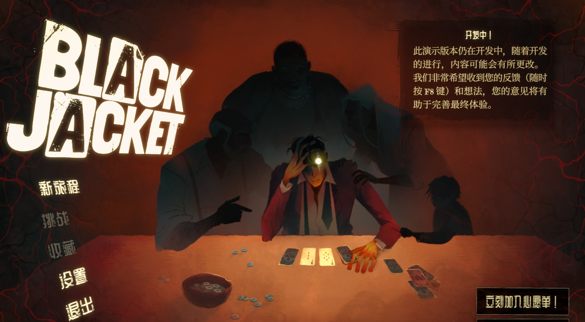 试玩版是免费的,Steam页面已经挂出来了,Demo版可以体验到不少内容。我的建议是,你先打五局。