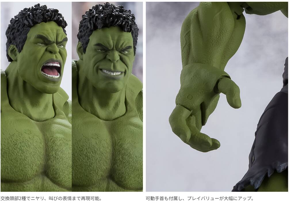 魂のデジタル彩色による頭部表現や、全身の質感なども一新し、造形面、可動面のバリューを最新のスペックで引き上げた決定版ハルクが登場。同時期発売の『アベンジャーズ』メンバーと合わせてAVENGERS ASSEMBLE!