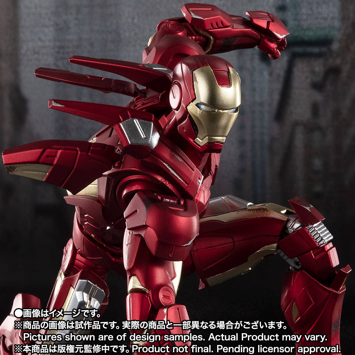 彩度を抑えたメタリックレッドとゴールドの彩色に加え、バトルダメージ等も意識したペイントとなっています。