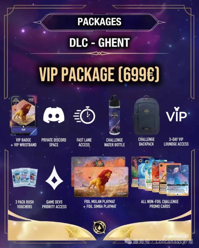 售价为699欧元的VIP礼包提供的实体内容包括:徽章手环、两张牌垫、之前所有的赛卡平版本一张、水壶背包以及3个打发叫花子的包包速探兑换券。