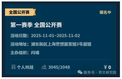 公开赛仍然采用抽选方式,第一次抽选结果在17日公布,然后会开放第二次报名。期间如果抽中资格的玩家没办法到场参与比赛,请务必取消报名,这样不会影响以后参赛的抽选。