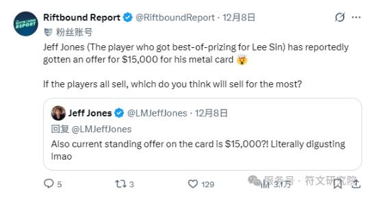 而且是盲僧报价,别的就更不好说了。消息来源是比较可靠的一位自媒体推主,如果是真的只能说羡慕老外有钱没处使。金属头以后每场比赛都会发呢,而且我很想知道等到再出几个系列,传奇数量变多之后,是不是拿个冷门传奇混一混就能得到一张啊