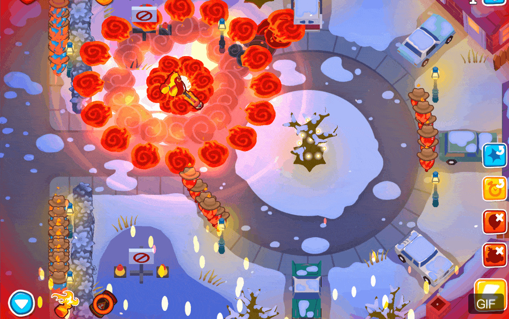 从小鞭炮到大烟花,想要热闹氛围搞出的动静必须得够大。爆竹格温到达LV3后,可以扔出小鞭炮,在指定方向爆炸,对进入该范围的气球造成持续伤害。