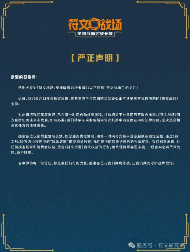 单从这件事上来看,符文战场做得就是比某些明知假卡猖獗还不管不顾毫无作为的游戏官方好。