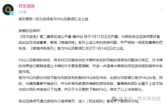 另外,官方发布的官方FAQ中,使用了“不求甚解”这样极度不合适的词汇来形容符文战场的玩家,这也让大量国内玩家在懊恼已经习惯的卡牌规则被修改的同时,感到被官方“挑衅”。当然这肯定不是官方的本意,但是单就此事,他们就应该为翻译的失误诚恳道歉。