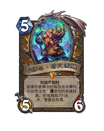 • 新:对战开始时: 如果你套牌中的每张法术牌均为自然法术,灌注你的英雄技能。你每施放3个法术,重复此效果。
