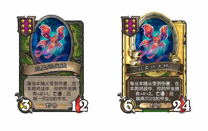• 新:[3/12] 每当本随从受到伤害,在本局对战中,你的甲虫拥有+2/+1。亡语:召唤一只2/2的甲虫。