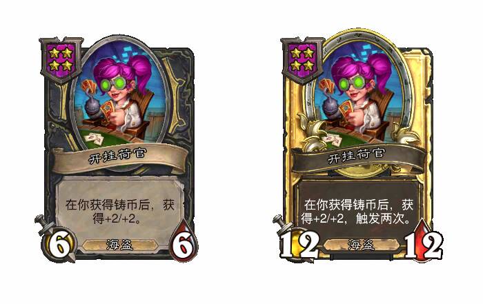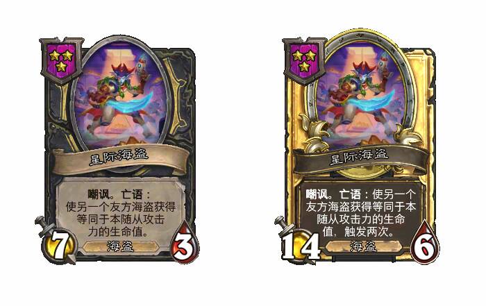 • 新:在你使用一张等级4或以上的牌后,使你的海盗获得+3/+2,触发两次。
