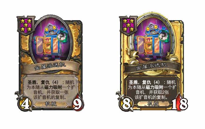 • 新:[4/9] 圣盾。复仇(4):随机为本随从磁力吸附一个扩音机,并获取一张该扩音机的复制。