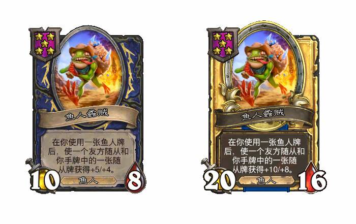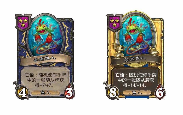 • 新:在你使用一张鱼人牌后,使你手牌中和场上的随从获得+2/+2。