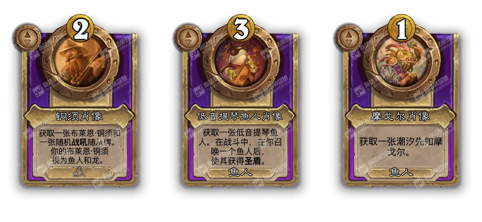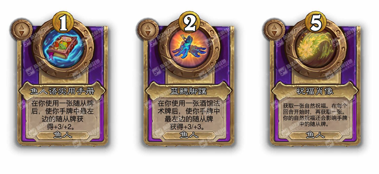 - [鱼人3费大型] 在你购买一个酒馆法术后,获取一张1/1的鱼人并教会它该法术。(每回合3次。)