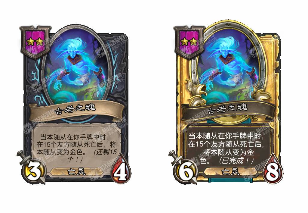 - [2星3/4亡灵] 当本随从在你手牌中时,在15个友方随从死亡后,将本随从变为金色。