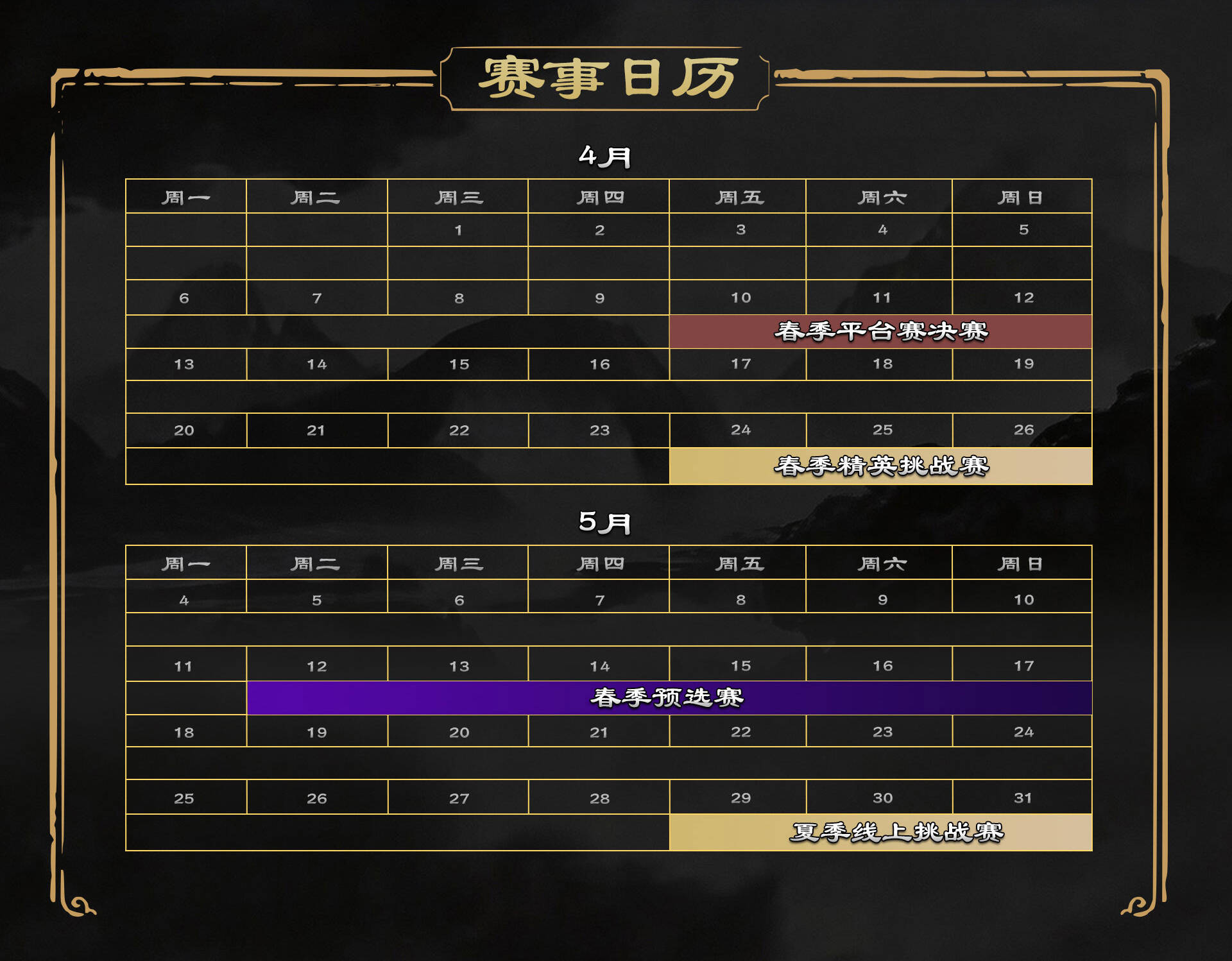 • 小组赛:4月24日13:00起