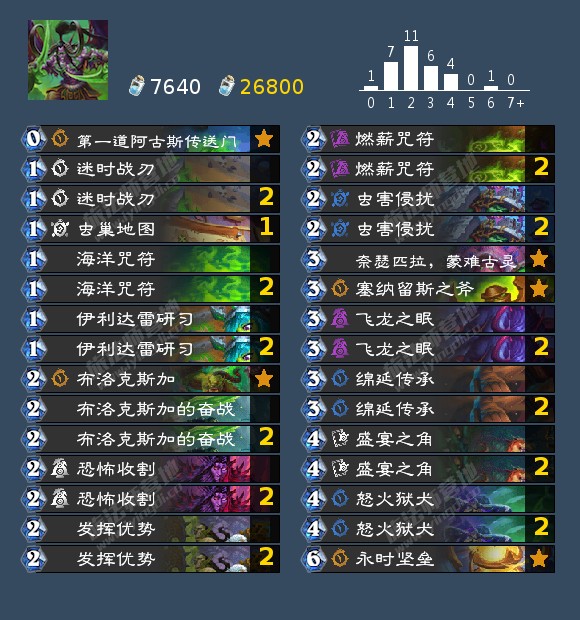 如果卡组有乐队经理精英牛头人酋长 或 奇利亚斯豪华版3000型 ,则详细卡图底下会显示相应的卡。