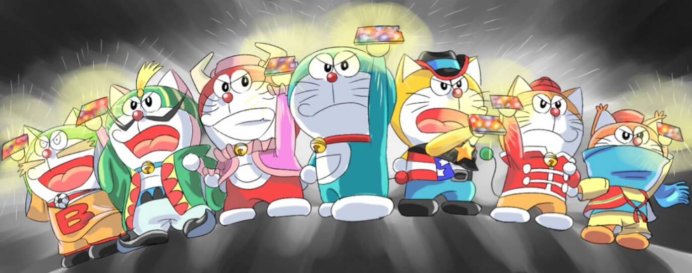 自《哆啦A梦》漫画原作者藤子·F·不二雄于1996年与世长辞后,以官方授权RPG游戏《友情传说:哆啦A梦七小子》为原型,田中道明和三谷幸广开始画哆啦A梦七小子的冒险故事漫画,二人的风格相差很大,但都很好地刻画了个性鲜明的七小子。七小子各有所长,经常打打闹闹,不管遭遇什么挫折和矛盾最后总会和好如初。