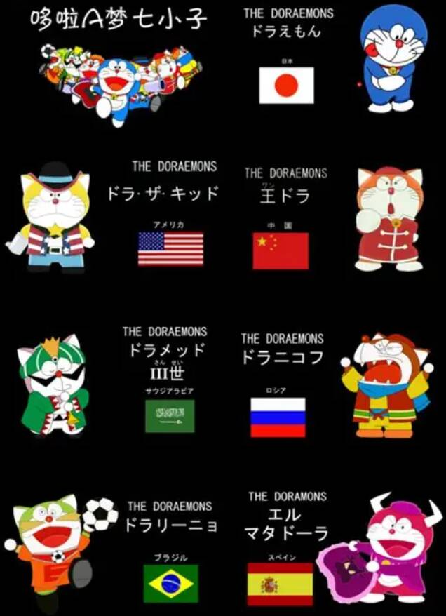 【哆啦尼可夫】来自俄罗斯。流浪旅行者,携带四次元围巾。看到圆形变身狼人,喝下辣椒油会喷火。缺点不爱说话。喜欢加辣椒酱的铜锣烧。