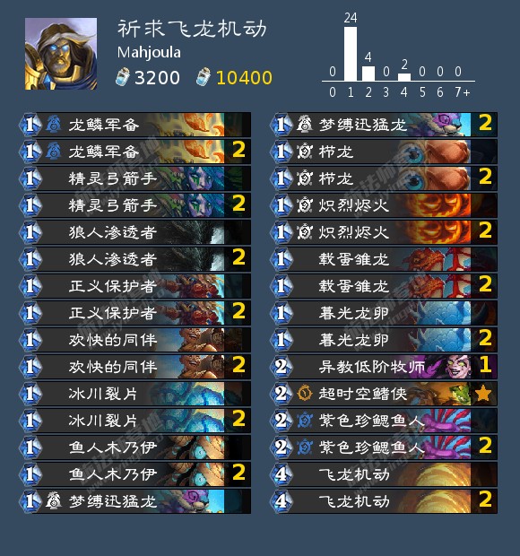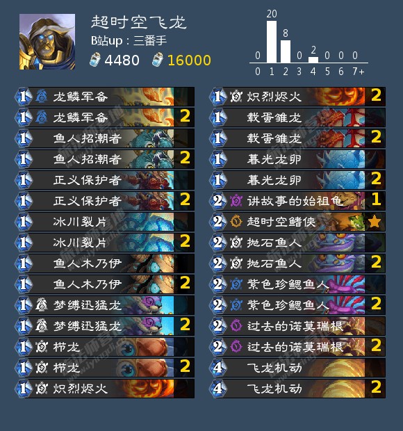 在B站上刷到一套地沟油卡组,这是原视频地址:【[炉石]最新地沟油分析 超时空飞龙骑】 https://www.bilibili.com/video/BV1nGDWBFEqC/?share_source=copy_web&vd_source=4b33f50a35fe9fe899d55455c555480a,思路就是尽快过到飞龙机动这张 牌,然后4费甚至3费准时打出直接压死死对手。这是视频中的卡组: