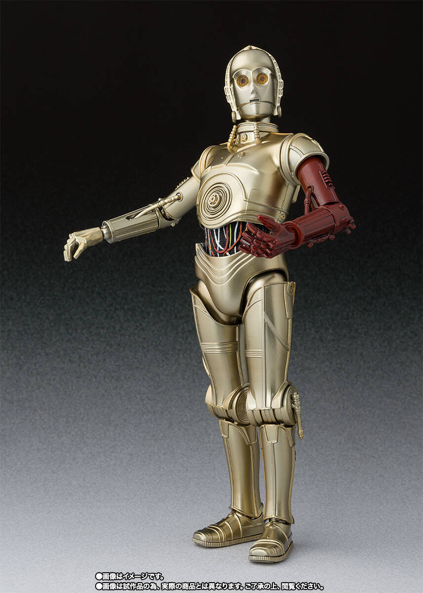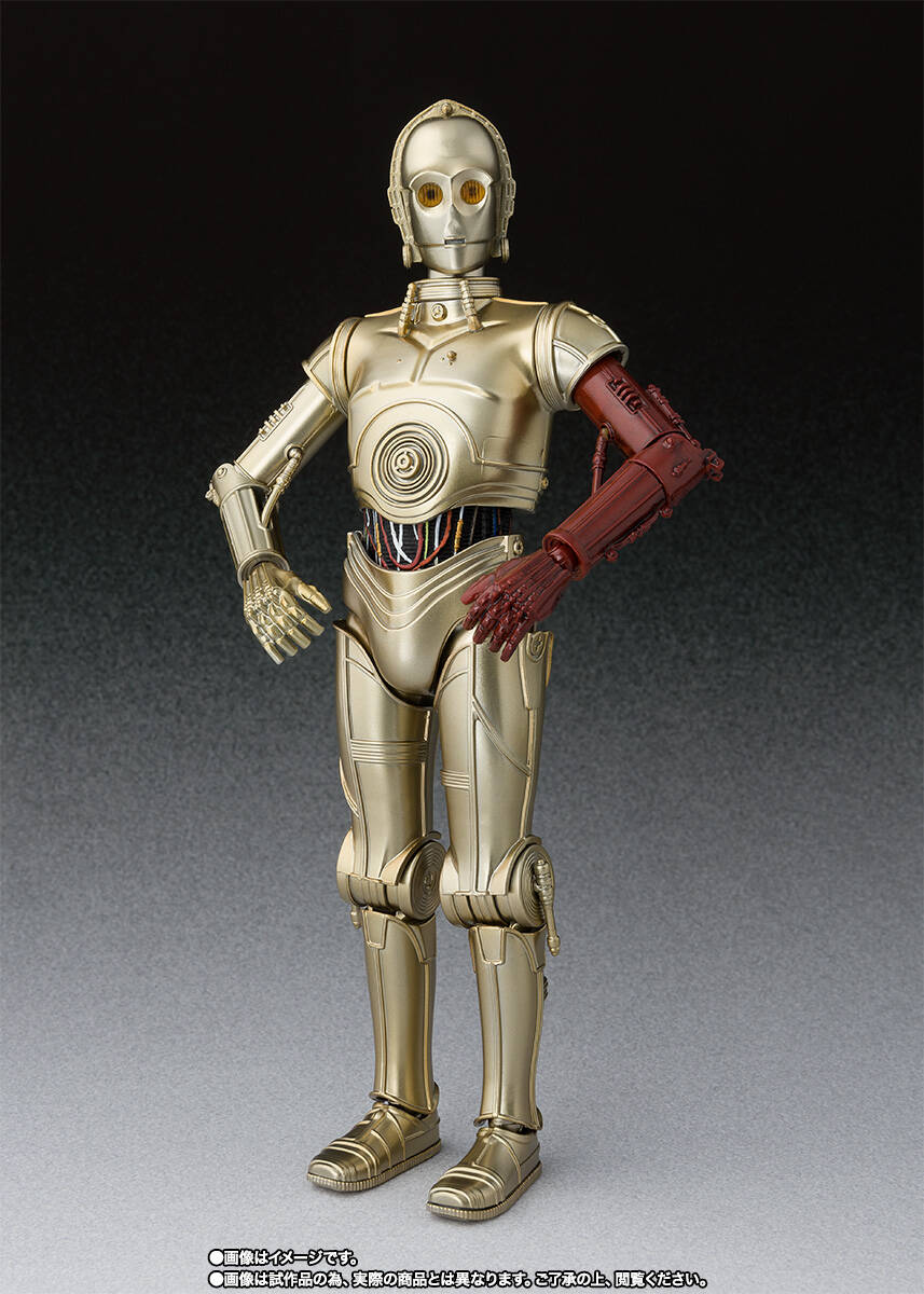『スター・ウォーズ/フォースの覚醒』に登場する左腕が赤いC-3POが「メタリック・マテリアル・フィニッシュ」塗装で登場。