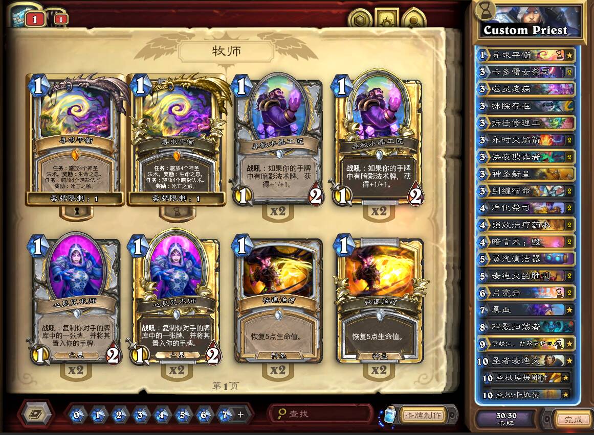 直接上卡组吧,这套卡组是根据外网炉石牧师大神zetalot的一套卡组优化过来的,大家有兴趣也可去看下zetalot的直播视频