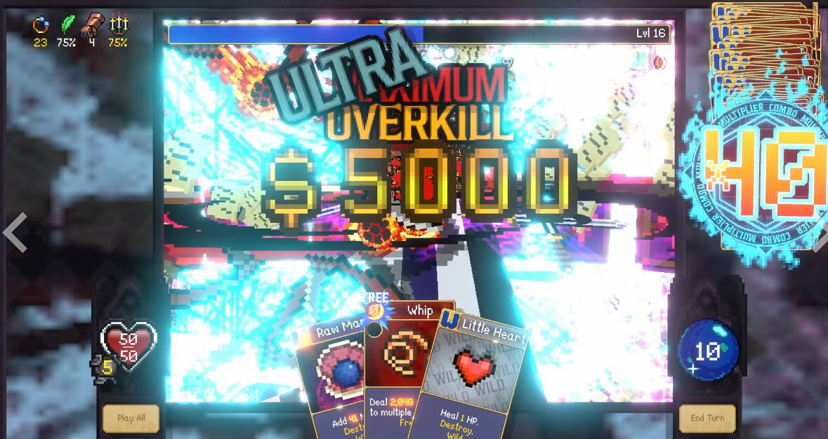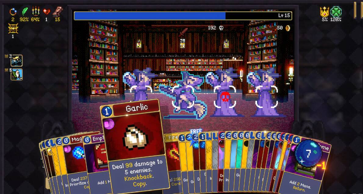 凭借着这些小巧思,《吸血鬼爬行者:屠戮地牢的吸血鬼幸存者》在卡牌游戏这一类型里成功复制了《吸血鬼幸存者》里的割草体验,在牌组构筑成型以后,你需要的就是按费打牌然后看见一波波的怪物倒在你面前。