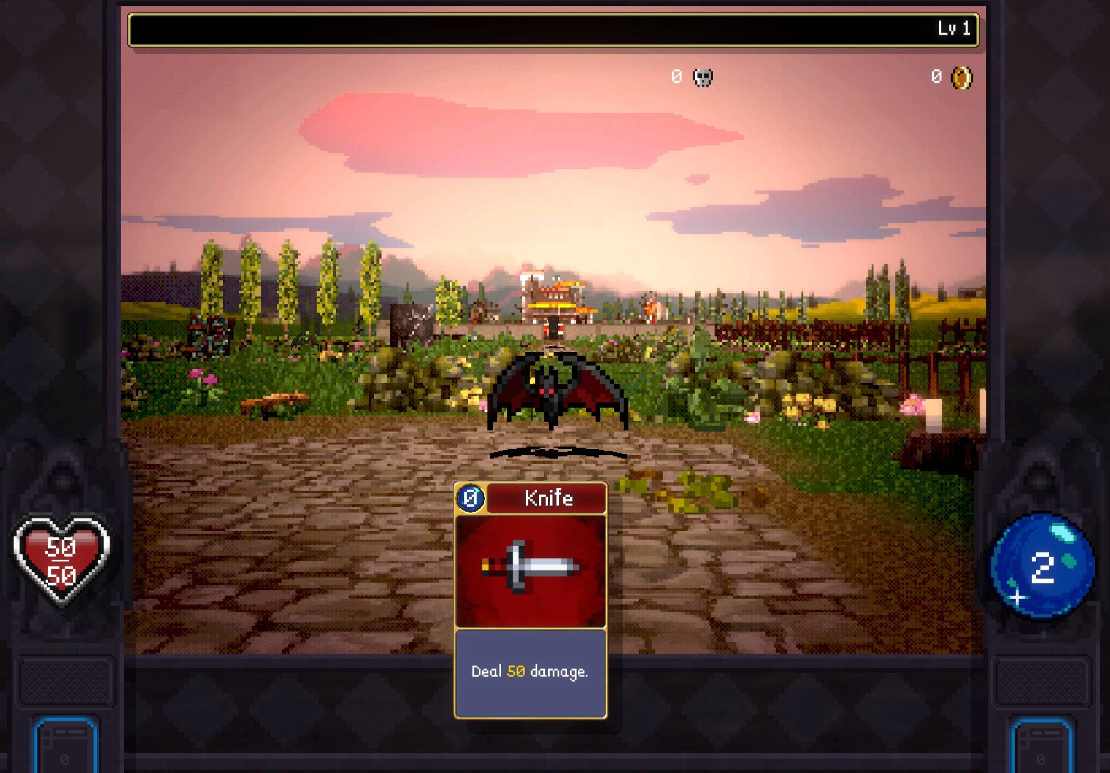 这一部分我想聊一点主观的游戏特点,首先是视听风格,前作《吸血鬼幸存者》的画面和音乐就有一些争议,支持者们认可音乐和音效对氛围的塑造,也觉得像素风格的视觉表达和游戏的调性相符,而反对者会认为游戏的视听表现过于粗糙落后时代。到了《吸血鬼爬行者:屠戮地牢的吸血鬼幸存者》,游戏的视角调整为了第一人称以后这样的争议会更加明显,不仅是视角的变化放大了游戏画面中细节缺失的缺点,而且游戏ui对信息的呈现也相当糟糕,再加上游戏采用的复古风格的地牢爬行操控方式,对于习惯了新时代游戏的玩家们来说会更难适应。