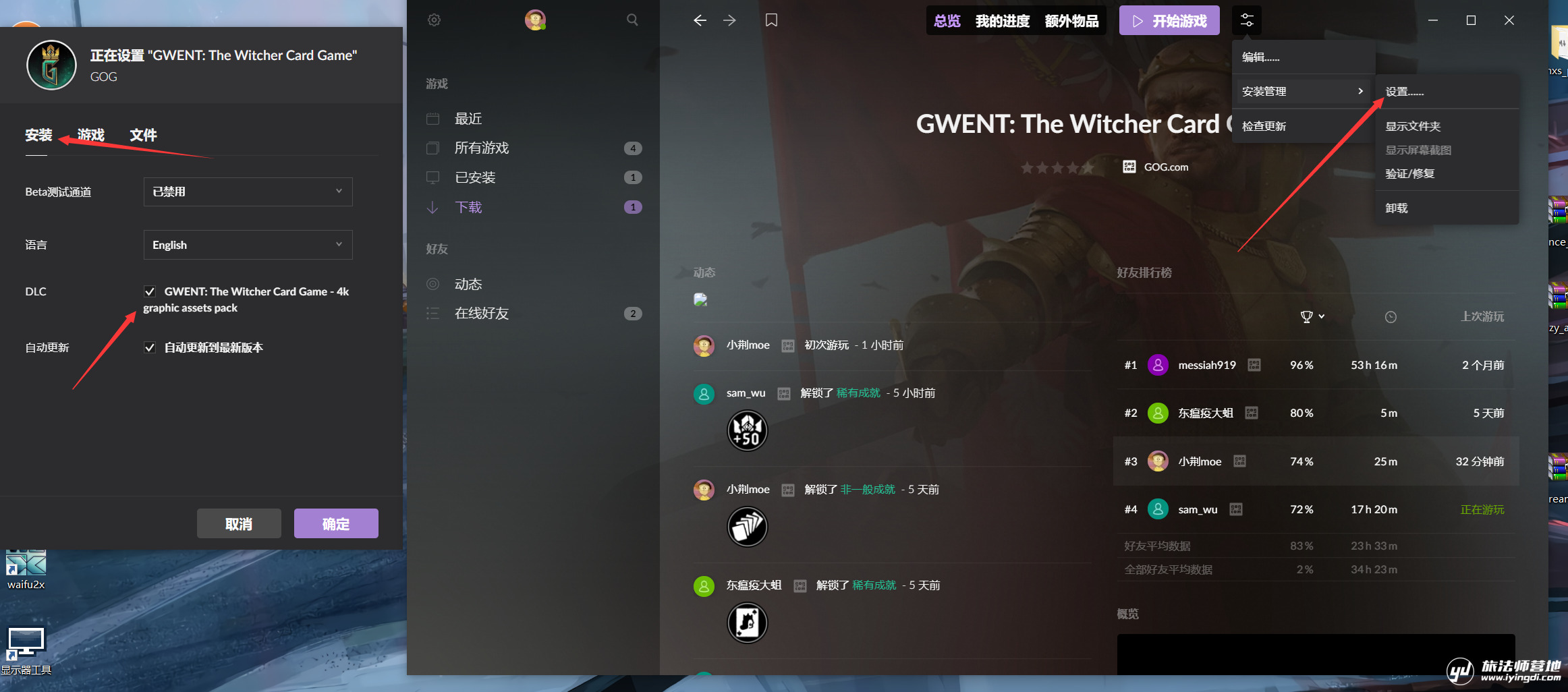 先去gog商店,搜索gwent,进入游戏商店页面,再右下角有个带4k字样的免费dlc,购买即可(只需一次购买)