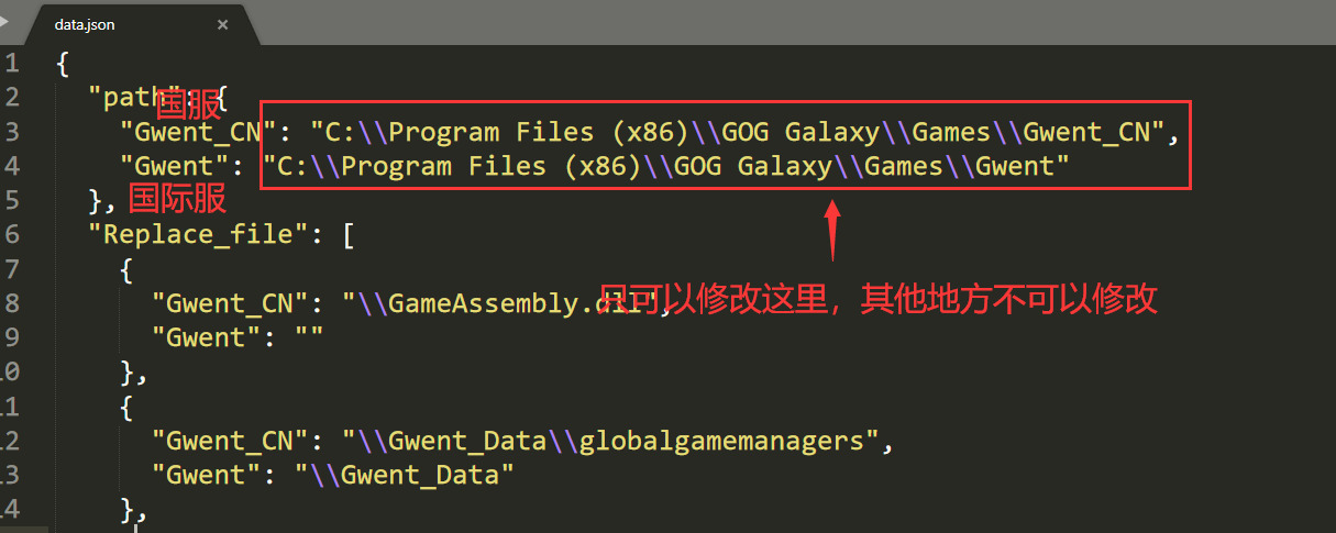 第一步修改 data.json,中 国服和 国际服 安装路径