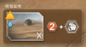 哈加盆地是可以采集香料的地区之一。你需要花费 1 个单位的水资源才可以向这里派遣特使。你可以采集到至少 2 个香料,以及任何积累的额外香料产出(在回合结束时,如果产地没有特使,就会放上一个 1 额外的香料产出在产出图标上 )。