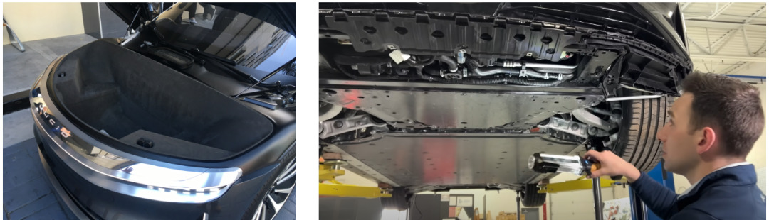 而为了给这么大个前备箱让地儿,它附近的管线布置可以说是把所有空间完全榨干,部件间几乎没有任何距离。