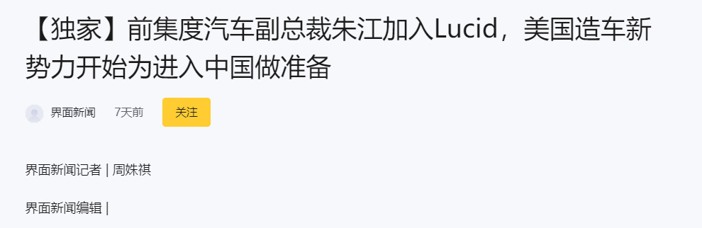 根据界面新闻的采访,华人高管朱江最近加入了 Lucid ,并且正在着手进入中国市场。虽然乍一看他们的品牌形象不咋地,可要是最后这事儿真成了,压力可就真要来到特斯拉这边了。